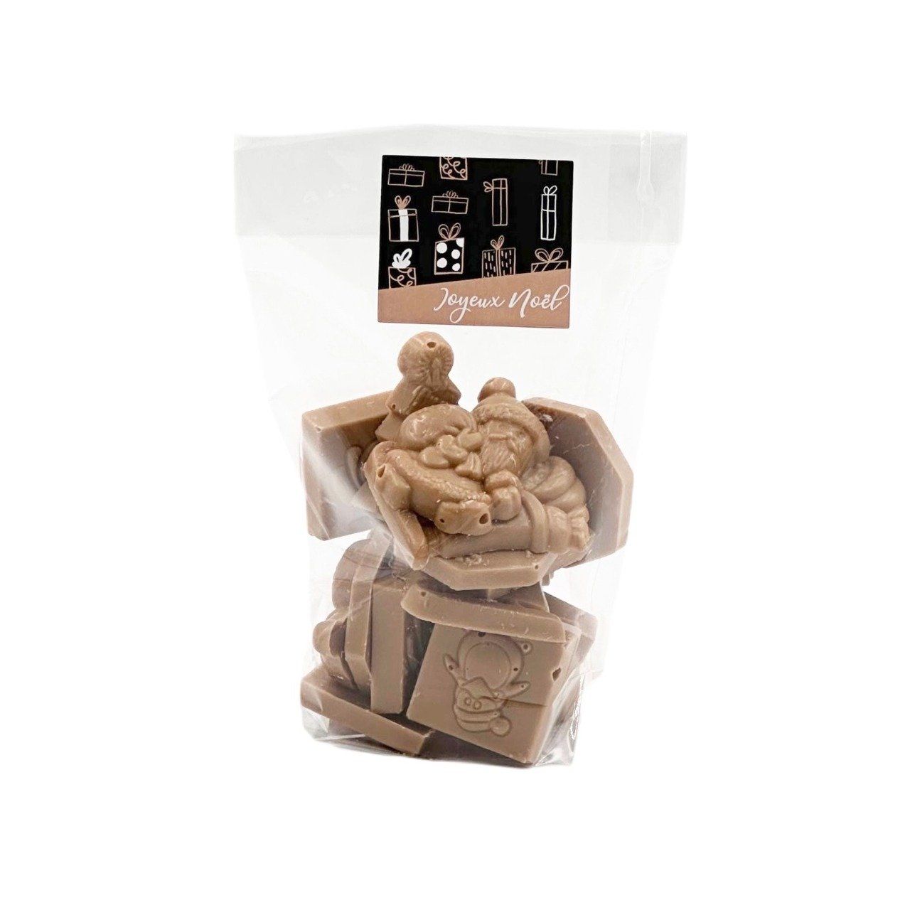 Lait 43% : Sucre, beurre de cacao, poudre de lait entier, fèves de cacao, émulsifiant (E322: lécithine de tournesol), vanille Madagascar.